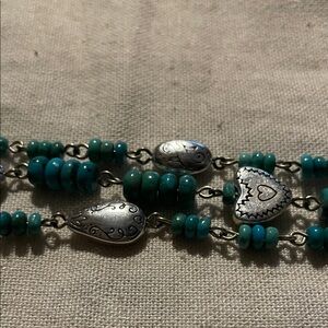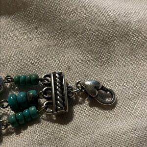 Charming bracelet with silver accents and teal beads. Perfect for any occasion.