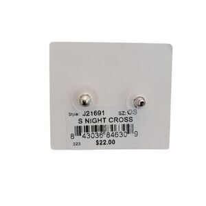 Chic silver cross studs. Ideal for versatile wear. Inspired by the trail of a falling stary night. with six crystals in bezel settings.
