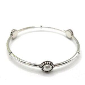 Brighton Silver-Plated Pearl Bangle Bracelet Beaded Accents with Heart Tin Gift