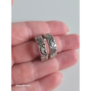Brighton Silver-Tone Etched Floral Hoop Earrings – 90s Retro Style – 0.7 in