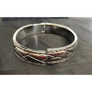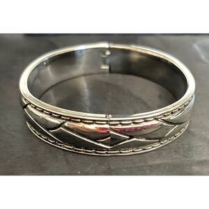 Brighton Silvertone Hinged Bracelet Etched Design Bangle