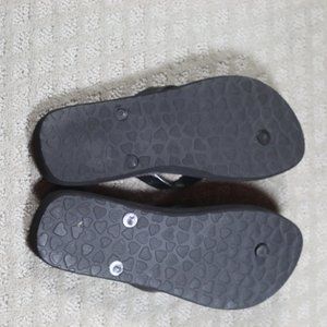 These are not your standard flip flops. They have arch support and are simply beautiful! Excellent preowned condition - there is one spot in the middle of the footbed where the paint has been smudge. Otherwise, they show no signs of wear.