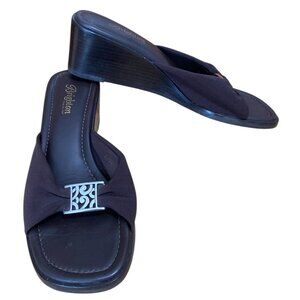 Brighton Slip On Wedge Sandals Fabric Upper Sz 8.5M Dark Brown