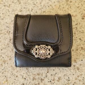 Brighton Smooth Embossed Leather Silver Hearts Mini Trifold Red Lined Wallet