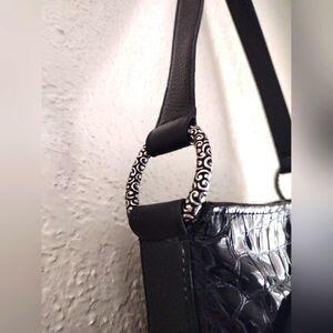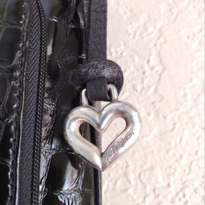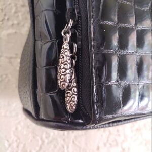 This Brighton Sonny shoulder bag is a must-have for any fashion-forward woman. The patent leather exterior is complemented by a stylish black moc croc with green lining as pictured. With ample space for all your essentials, it's perfect for daily use. The bag is in great shape and has been well-maintained, ensuring its durability. Whether you're going to work or running errands, this bag is sure to turn heads.