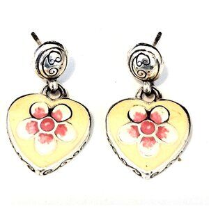 Brighton Spring Fever Cream & Pink Flower Silver Dangle Drop Earrings