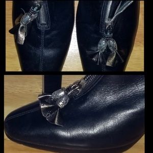 Brighton R2176 Stacy zip up black ankle bootie with grey folded cuff