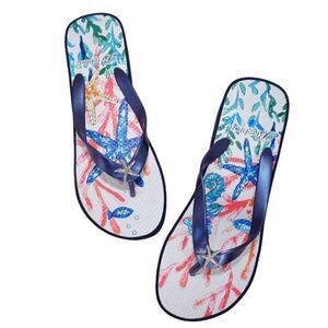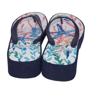 Starfish hardware accent at toe with bright colored starfish and coral design on footbed
