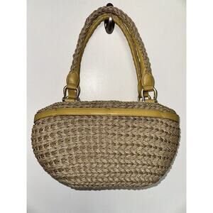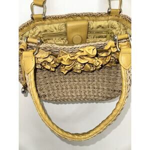 Brighton Straw Yellow Leather Flower Handbag Top Handle Bag Boho Shabby Chic