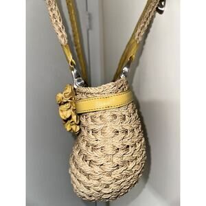 Brighton handwoven straw purse in like new condition, this beautiful purse has 3 beautiful yellow flowers on the front of the purse in yellow leather, straw look on the outside of the purse which is very soft and flexible, unlike a straw purse. You would assume it's stiff and hard, but this is Lovin a certain way that has a lot of give to it. the inside of the purse has a beautiful yellow Brighton pattern, the purse also has two beautiful yellow leather and straw straps so that you can wear the bag on your shoulders. the bag has 6 compartments, the bag is 14.5x8x4.5,