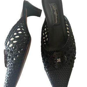 Brighton Tana Black Woven Leather Pointed Toe Kitten Heel Size 6.5 Witchycore