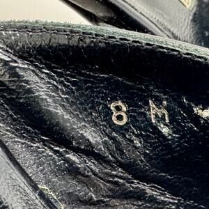 Keywords: Brighton heels, black leather mules, croc embossed shoes, square toe heels, buckle mules, slip on heels, women's heels, designer mules, fashion heels, elegant shoes, dressy mules, workwear heels, evening shoes, brunch shoes, size 8M heels