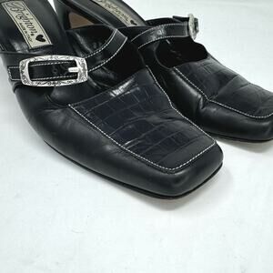 Brighton Tanner-Croc Embossed Square Toe Heeled Mule-Size 8