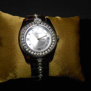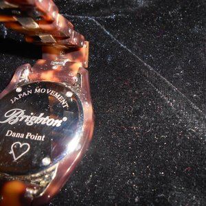 Brighton Dana Point Watch Tortoise shell Clear Crystal Silver needs Battery 6 1/2 inches I Don't accept returns only if the watch is not working after battery is not working please contact within 5 days I want you to be happy it does work this watch is partly Brand new, Hardly worn comes from a pet and smoke free home Thanks for looking!