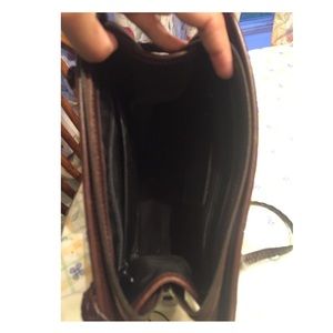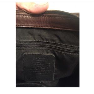 Gently used, braided leather straps, genuine registration number on inside tag.