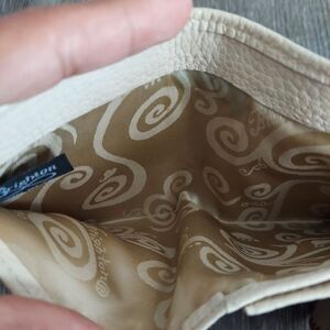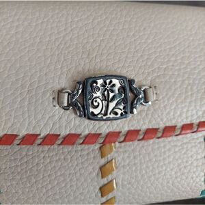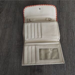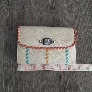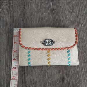 Brighton Trifold Wallet Cream with Blue Orange Yellow Ribbons Stitching