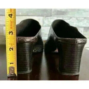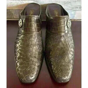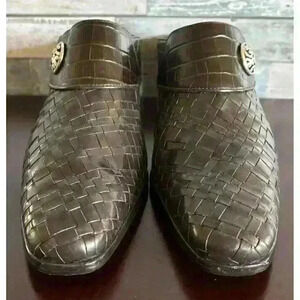 Brighton Tryst Women's 9.5 M Brown Leather Slip-On Woven Slide Heels Mules