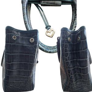 Brighton Turquoise Teal Monroe Croc Embossed Leather Top-Handle Purse Bag Womens