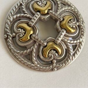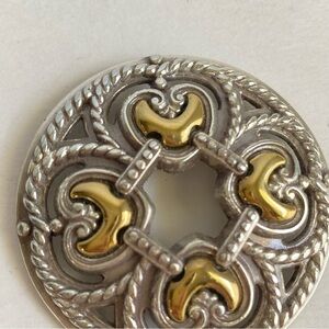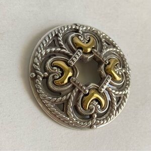 Brighton Two Tone Round Heart Brooch Silver Gold Tone Pin Textured Rope Detail