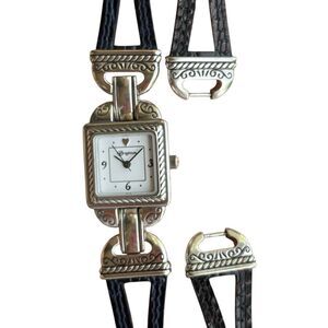 Brighton Valencia Silverplate Watch Xtra Reversible Band 5.5" 6.5" Needs Battery