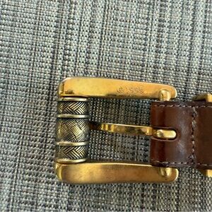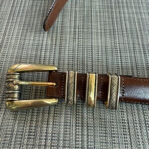 Brighton Vintage Brown Leather Belt with Gold Accent Size L