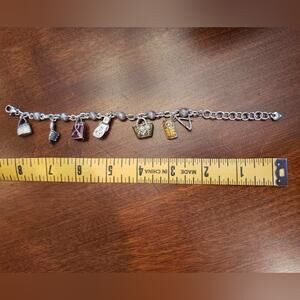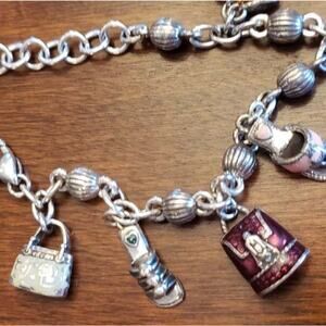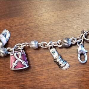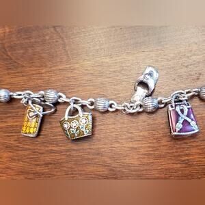 Brighton Vintage Enamel and Silver Plated Purse and Shoe Retired Charm Bracelet