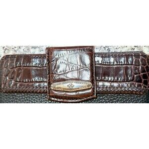 Vintage Brighton Leather Croc Embossed Bi-Fold Checkbook Wallet Brown/Black