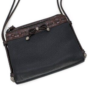 Brighton Vintage Purse Black Pebbled Leather Small Crossbody Organizer Bag