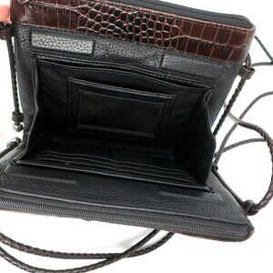 Brighton Vintage Purse Black Pebbled Leather Small Crossbody Organizer Bag.