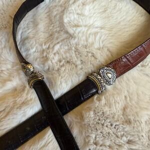 Brighton Vintage Reversible Two-Toned Leather Belt Silver Hardware