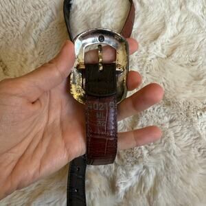 Brighton Vintage Reversible Two-Toned Leather Belt Silver Hardware Size M/L 32