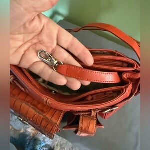 Brighton Vtg Burnt Orange Adjustable Crossbody Organizer Bag Croc Embossed