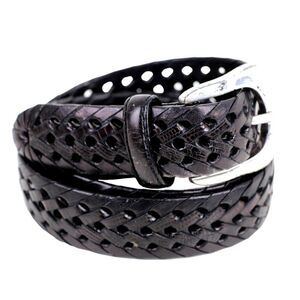 Brighton WOVEN DARK BROWN LEATHER 1"Wd DRESS CASUAL WOMEN'S BELT Sz M/32 (T12
