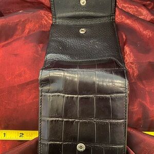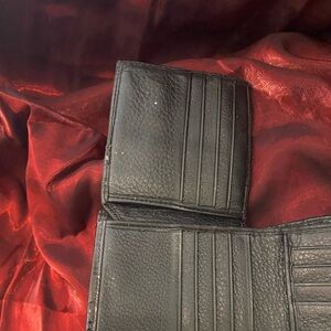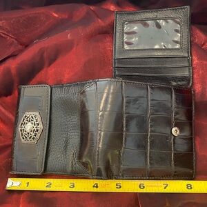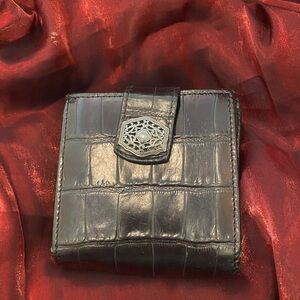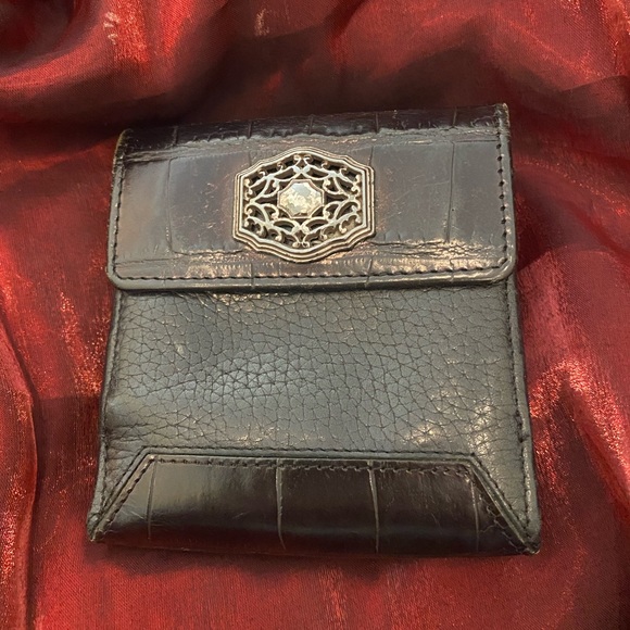 Brighton wallet. Excellent condition. Lots of card slots, photo ID slot. Dollar Bill and change snap pocket. Smoke free home. Very cute. Silver a little worn.