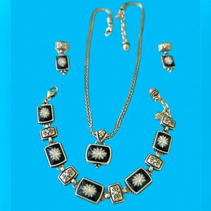 Brighton "Waterlily Black" Necklace Bracelet & Earrings - 3 piece set.