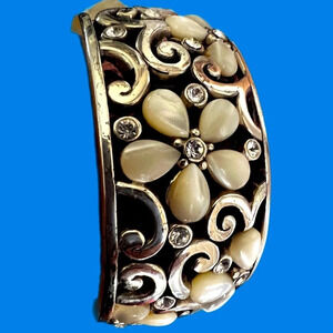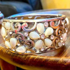 Brighton White Jasmine Flower Magnetic Close large cuff Bracelet.