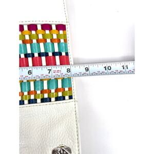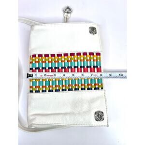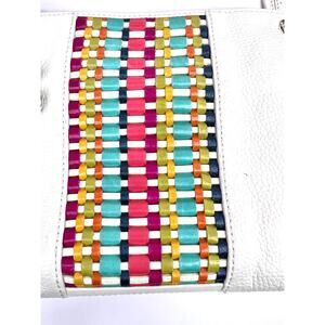 Brighton White Leather Shoulder Purse Bag Colorful Woven Front