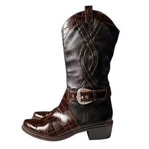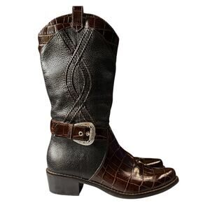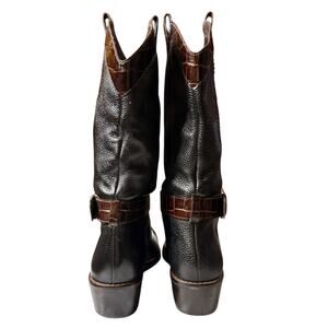 Brighton Will Boot Womens Black Brown Croc Embossed Western Cowgirl Size 8.5M