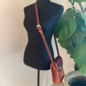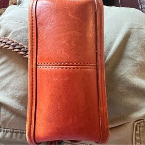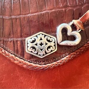 Brighton Women’s 1990 Leather Brown Saddle Flap Crossbody Silver Tone Hardware. 1 outside and 1 inside zip pocket. Magnetic closure. Braided leather strap, with embossed reptile cover flap. Silver tone adornments have surface scratches. Otherwise, in excellent vintage condition!!!