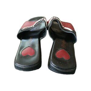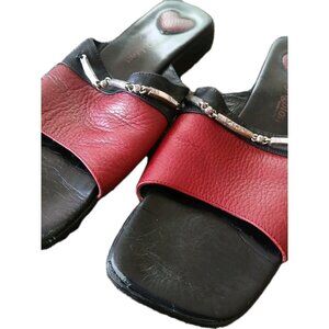 Brighton Womens 8 Red Black Leather Slide Sandals Slip On Comfort Retro 90s Y2K
