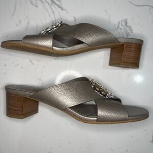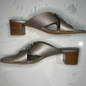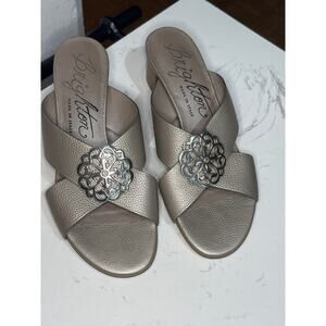 Brighton Women's Alison Zinc Pearl Ferrara Block Heel Sandal, Size 8, Like New