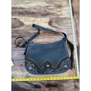 Brighton Women's Black Embroidered Heart Appliqué Shoulder Bags
