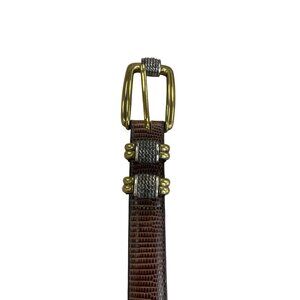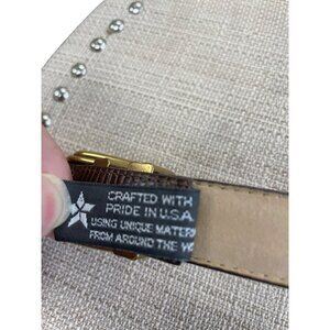 This Brighton is a quality crafted belt with premium leather and detailed with gold and silver accents. This belt adds a sophisticated touch to tailored or casual ensembles. It does have minor wear pointed in pics but in overall good condition none the less. I ship fast. SKUn 8363