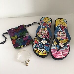 Brighton Women's Julia Flip Flops 8 Sandals NWOT + Art and Soul Bangle Bundle