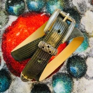 Brighton Womens Large Vintage Brown Green Leather Faux Lizard Skin Embossed Belt