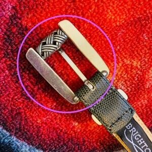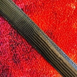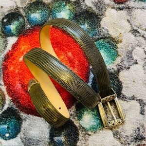 Brighton Womens Size Large Vintage Brown Olive Green Leather Faux Lizard Skin Embossed Belt: