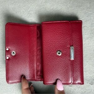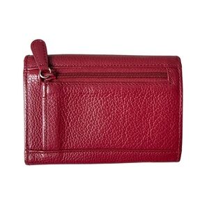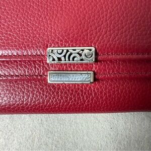 Stand out with this vibrant lipstick red “Barbados” wallet by Brighton, crafted from high-quality pebbled leather with a double flap design for effortless organization. Features a polished silver accent, multiple card slots, zippered coin pouch, and snap closure to keep everything secure in style.