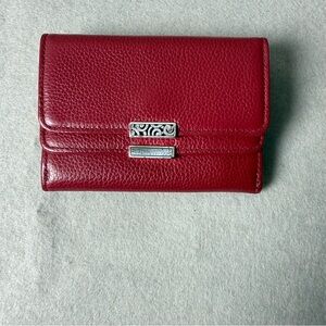 Brighton Womens Leather Barbados Double Flap Wallet in Lipstick Red Snap Closure