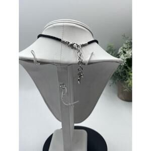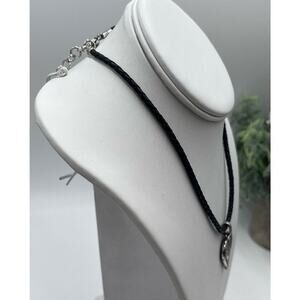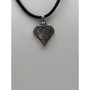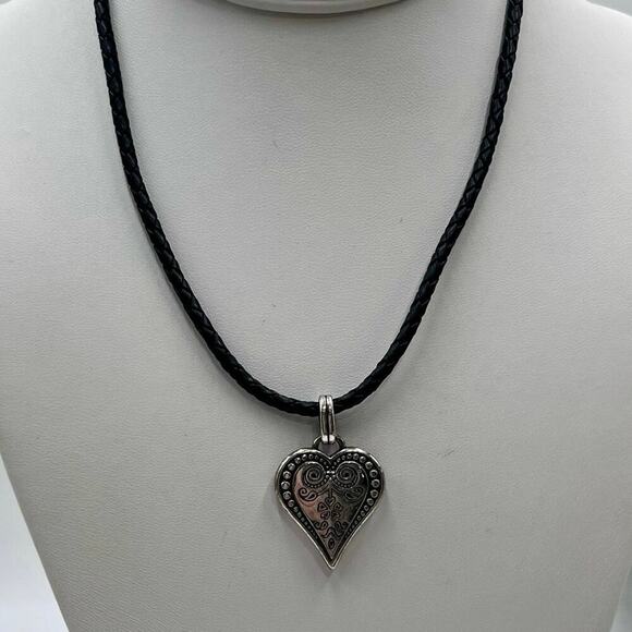Brighton Womens Necklace Silver Ophelia Heart Pendant Black Leather Braided