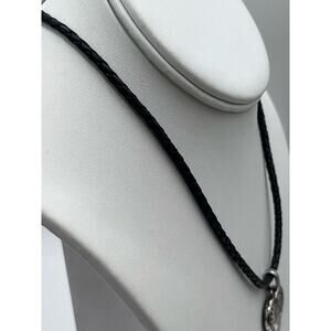 Brighton Ophelia Ornate pendant leather cord necklace .It is about 18 inches long and pendant is 1 3/8 inches long (top of bail) .It is in good condition.